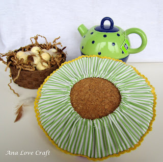 I sewed some litlle bags for my nieces and I made a cover for a cork base to animate the table at teatime. See if you like!