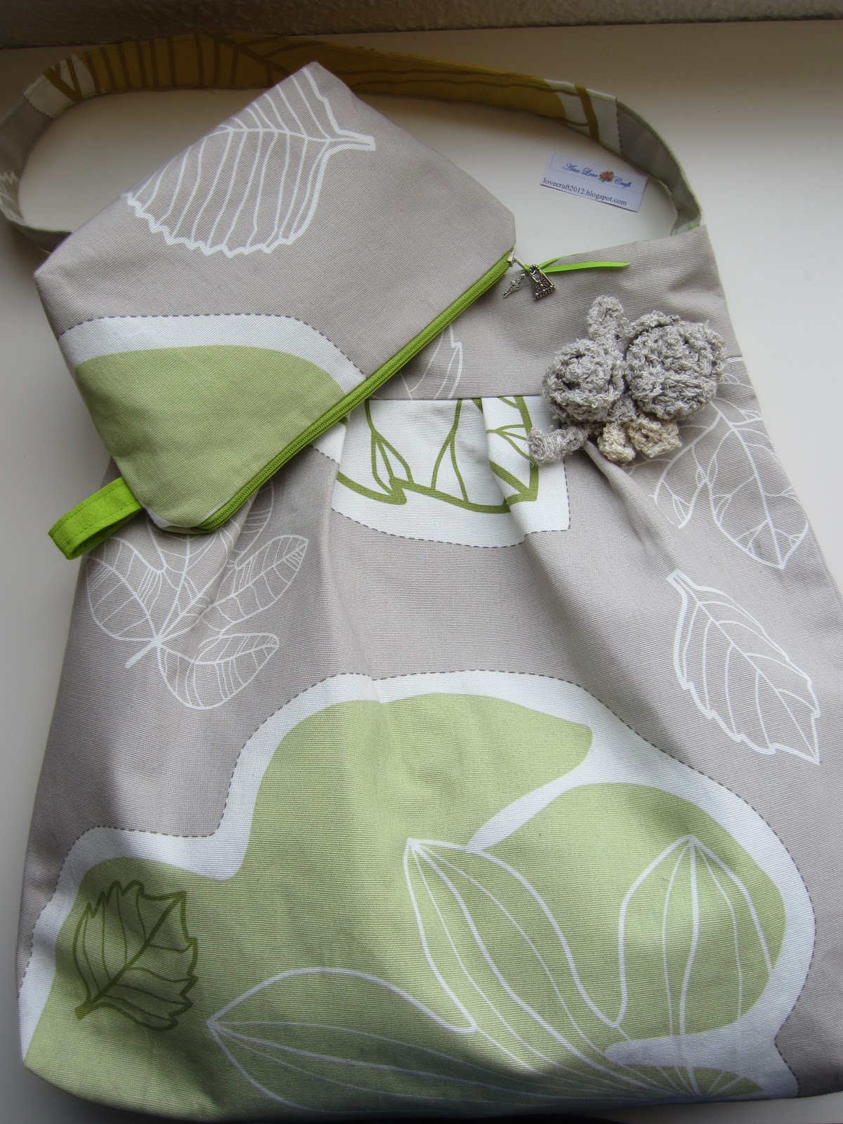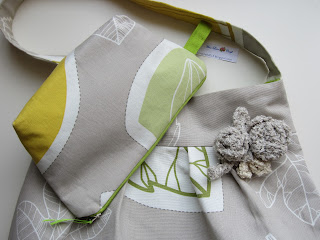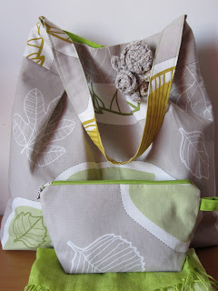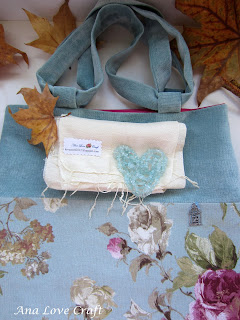 My passion for bags and pouches continues. The days are still nice and tomorrow I will use my first bag of Autumn. I used linnen fabric in combination with velvet. I also make a pouch to match.