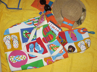 Recalling the trips I've ever done, recalling some funny and memorable travel days that I lived and dreaming of the next places I'll visit,I made this tote and pouches very useful when I travel. I loved this fabric!